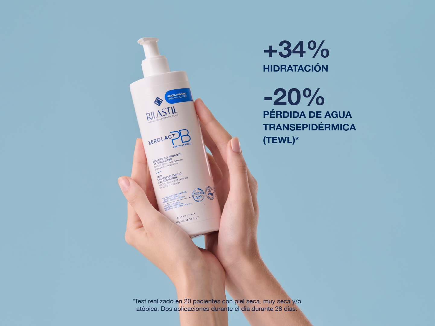 Hidrata durante 48 horas. Ajuda a aliviar as sensações de prurido no corpo.