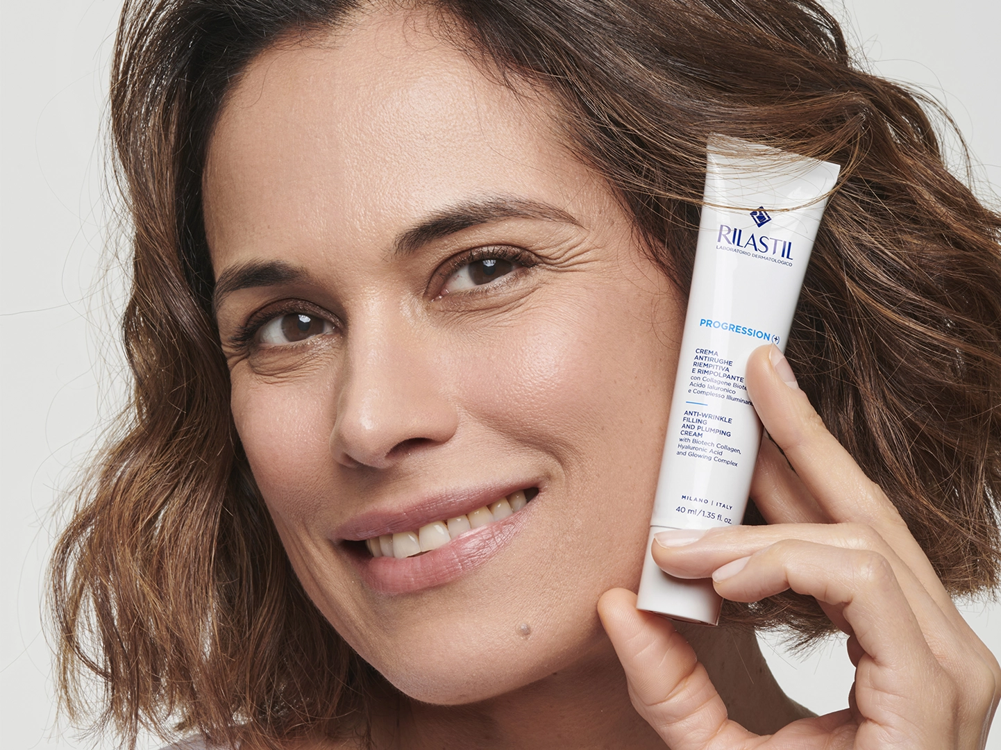 Colagénio, ácido hialurónico, complexo iluminador, ceramidas, exopolissacarídeo biotecnológico e Niacinamida