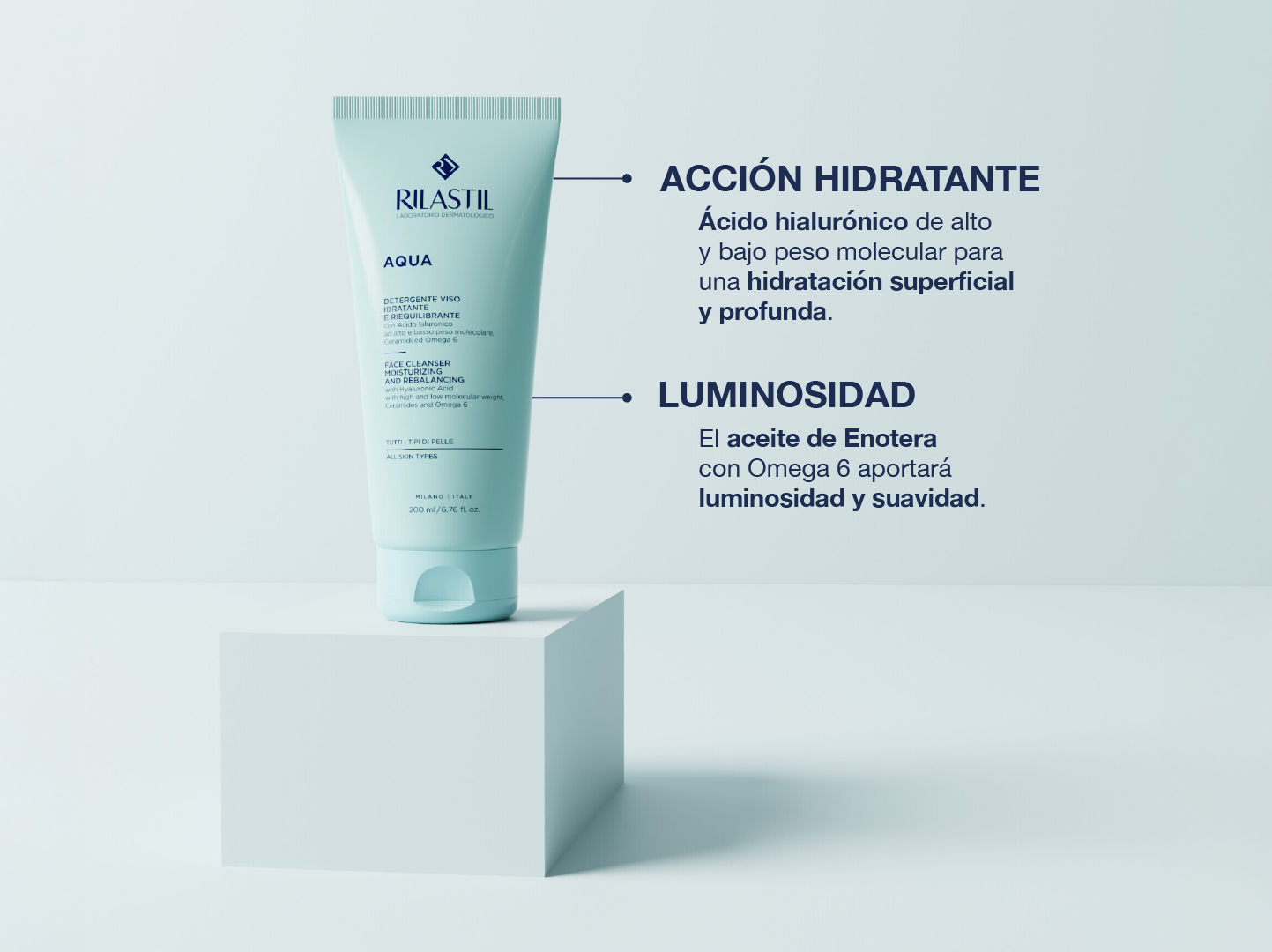 Rilastil Aqua Desmaquilhante Facial é um complemento ideal para todas as linhas anti-envelhecimento. É particularmente indicado para contrariar a perda acentuada de água transepidérmica. Recomenda-se combinar a utilização diária do gel de limpeza com o creme facial Aqua Intense 72h.