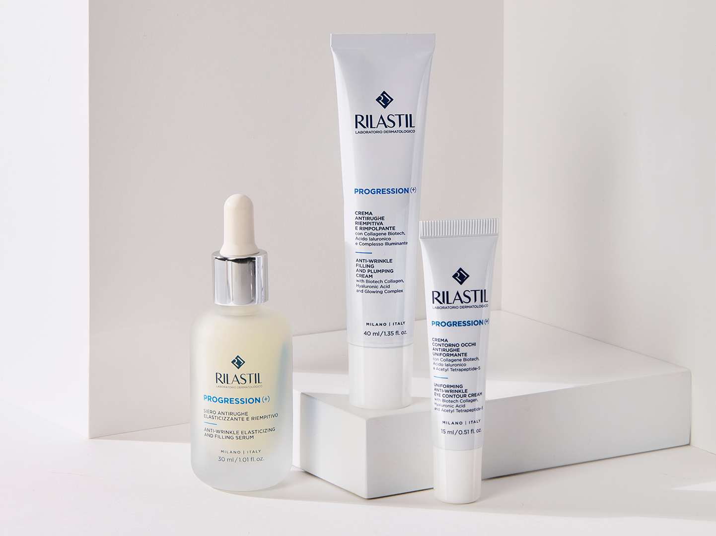 Colagénio, ácido hialurónico, complexo iluminador, ceramidas, exopolissacarídeo biotecnológico e Niacinamida